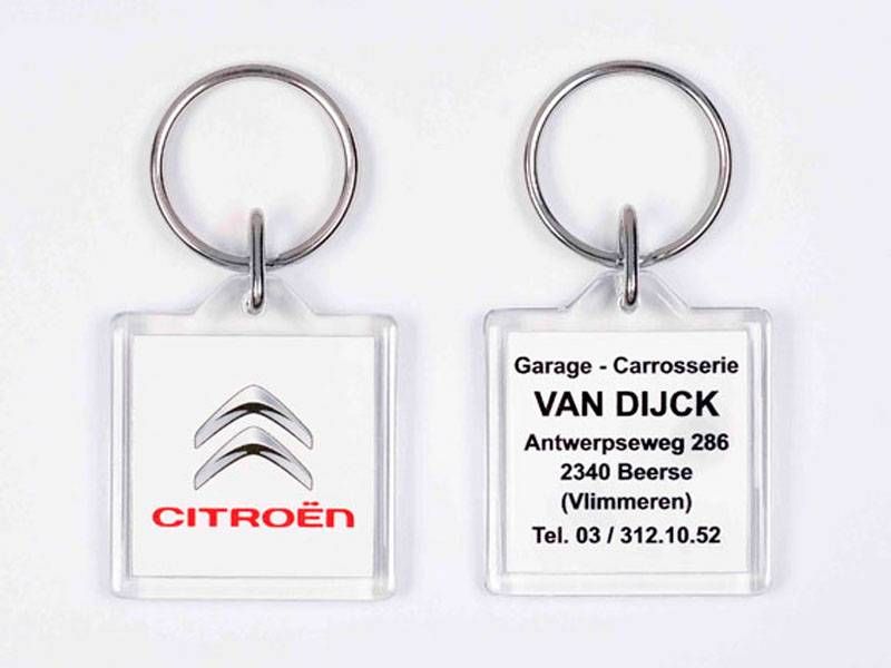 * Sleutelhanger van onverwoestbaar plexiglas (polycarbonaat)